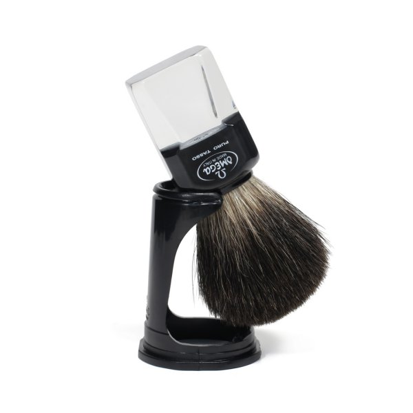 33175 Πινέλο ξυρίσματος με τρίχα ασβού & βάση στήριξης – Omega Black Badger shaving brush