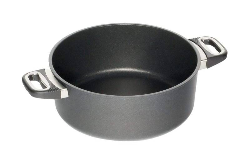 Τα σκεύη της AMT Gastroguss κατασκευάζονται από ένα ειδικά σχεδιασμένο χυτό κράμα αλουμινίου και τιτανίου που τα κάνει ιδιαίτερα ανθεκτικά. Χάρη στη μεγάλη τους αγωγιμότητα, η θερμότητα κατανέμεται ομοιόμορφα σε όλο τα σκεύος, ακόμα και στα τοιχώματα του, γεγονός που σας δίνει καλύτερα μαγειρικά αποτελέσματα και μειώνει τον χρόνο μαγειρέματος κατά 20%. Τα σκεύη της AMT είναι επιστρωμένα με την επαναστατική αντικολλητική οικολογική επίστρωση Lotan® που σχεδίασε η ίδια η εταιρία για τα σκεύη της. Μπορείτε να μαγειρέψετε χωρίς την χρήση λιπαρής ουσίας (λάδι, βούτυρο κλπ). Τίποτα δεν θα κολλήσει ή θα καεί και το καθάρισμα του σκεύους θα γίνει ακόμα πιο εύκολο. Η επίστρωση Lotan® είναι 100% ασφαλής καθώς δεν περιέχει ίχνος υπερφθοριοοκτανοϊκών οξέων (PFOAs) ή άλλων χημικών που είναι επιβλαβή για την υγεία.