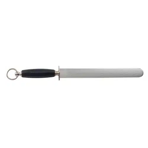 Το μασάτι ακονίσματος Fischer Evolution 7 είναι το απαραίτητο εργαλείο για τους κρεοπώλες και τους σεφ που αναζητούν γρήγορο και αποτελεσματικό ακόνισμα των επαγγελματικών τους μαχαιριών. Χάρη στην εξαιρετικά μεγάλη βέργα 28 cm από επιχρωμιωμένο ανθρακούχο χάλυβα , αποκαθιστά τέλεια την κόψη των λεπίδων, μειώνοντας παράλληλα τον αριθμό των περασμάτων που απαιτούνται.