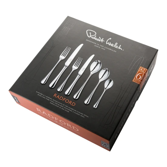 Η σειρά Radford είναι μια διαχρονικά κλασική σειρά μαχαιροπήρουνων από ανοξείδωτο ατσάλι 18/10, με πάνω από 60 επιπλέον κομμάτια. Το Radford Bright είναι ένα από τα πιο διαχρονικά και δημοφιλή σχέδια του Robert Welch.